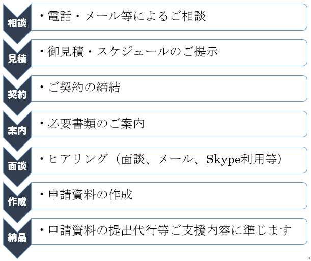 在留資格認定証明書交付申請や在留資格変更許可申請、帰化許可申請等の外国の方の日本国内での就学・就業や居住のためのご支援を成功報酬(※)で対応しております。